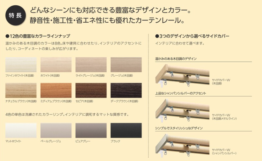 静音性に優れ、カラーバリエーションが充実のカーテンレール。