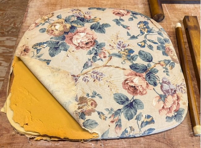 修理とあわせて、座面も布からレザーへ張り替えたいとのご要望もありました。