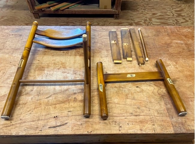 2件目は、椅子の脚がすべて外れてしまい、組みなおしの依頼でお持ち込みいただきました。
